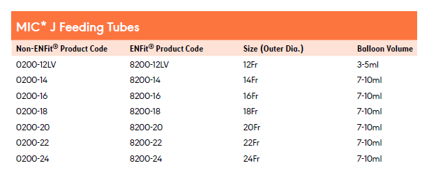 The MIC* J FEEDING TUBE is indicated for patients requiring jejunal feeding only. The distal tip can be trimmed to suit